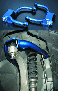 | 负外倾角A型上横臂 NEGATIVE CAMBER UPPER A ARMS 性能 增强转弯时车头的着地行驶性能 使用本产品替换前上臂,能扩大转弯时轮胎对地面的接触面积,从而增强急转弯性能。 |