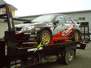 ローダーに積み込み完了。東京ラリーに向けて出発です。