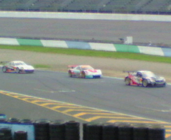 見えにくいですが写真の一番右が順調に疾走する77号車、クスコDUNLOP SUBARU INPREZAです!!
