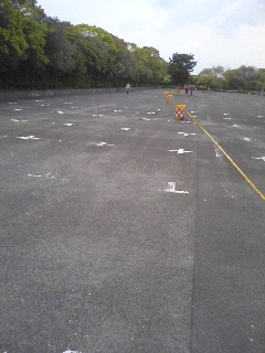 駐車場の植木やカラーコーンでコースが作られてるのでイメージ作りをしてます…