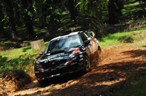 ![]() デイ2最初のSS。空は見違えるように晴れ渡ったが、路面は前日の雨でまだ湿っている難しいコンディションだ。 |