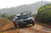 ![]() SS12を走行するヤナギ。マレーシアのステージは、オイルヤシのプランテーションを縫うように走る。 |
