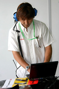 スーパーラップに向けデータをチェックする松田マネージングディレクター