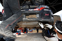 ![]() 硬い路面、路面に顔を出す石、細かいクレストとダメージは意外と大きい。アンダーガードのメンテナンス、交換は念入りに行われた。 |