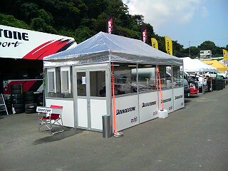 2本目の走りを検討してます。 今回は、ブリヂストンが豪華エアコンの効くパドックテントを用意してくれたのでその中でやってます。
