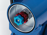 減衰調整ダイヤルをショックトップ(正立式は上側、倒立式は下側)に装備(伸側:青ダイヤル、圧側:赤ダイヤル)、減衰力調整は工具不要。