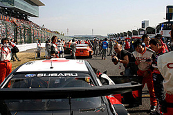 ![]() Drivers gave their all time to preparation, also having driver change simulation ![]() On free run, they did pit-in simulation many times. ![]() Director Omizo gave his cheer to Yamano who was waiting race start. ![]() CUSCO Impreza was on grid just four cars behind from GT500! |