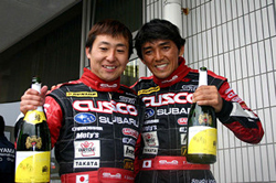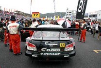 Although after having overnight working of everyday and night, pit staff did great job at the scheduled pit-in. They completed routine work in 45 seconds and sent the Impreza which handed to Yamano from Sasaki back to the course. Yamano who took the wheel for second half of the race backed to the battle in 6th position and made cautious approach until warm tyres up. However he made position up at each opportunity when other machine made their pit-in after long run, and moved 4th up. Also he passed Z which was running in 3rd at Mike Knight corner on 57th lap. Yamano maintained the podium position with consistent pace and got checker in the 3rd position which CUSCO RACING had been waiting for three seasons. |