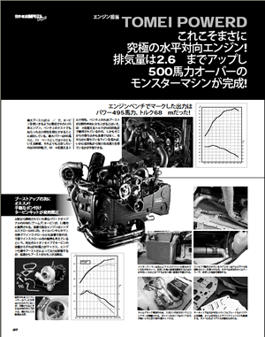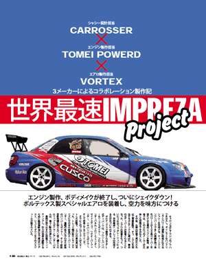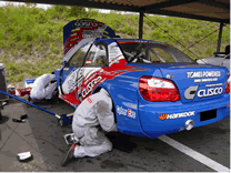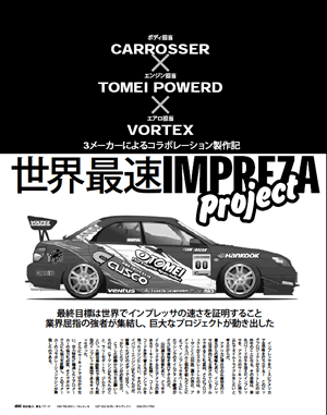 | From our experiences of being involved to SUPER GT SERIES in Japan and ASIA PACIFIC RALLY CHAMPIONSHIP, our engineer designed and developed the car, IMPREZA (GDB-F). We choose the IMPREZA from the reason of the market needs and our item line ups. TOMEI POWERED also developing the EJ engine as one of their main stream items. Therefore both we could choose the car in a good mood. |