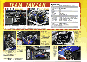■TEAM NAME: TEAM TARZAN ■CHASSIS & DRIVE TRAIN: CARROSSER CO., LTD. ■ENGINE: TOMEI POWERED INC. ■DRIVER: TARZAN YAMADA (EIJI YAMADA) ■AERODYNAMICS: VOLTEX ■ADVISER: MASAMICHI TAKIZAWA (Cyber EVO) ■CALENDAR SUPER LAP BATTLE July 12th ? 13th : Willow Springs Raceway, CA November 11th-12th : Buttonwillow Speedway, CA Redline Time Attack Seiries July 19th-20th : California Speedway, CA And other events are planning |