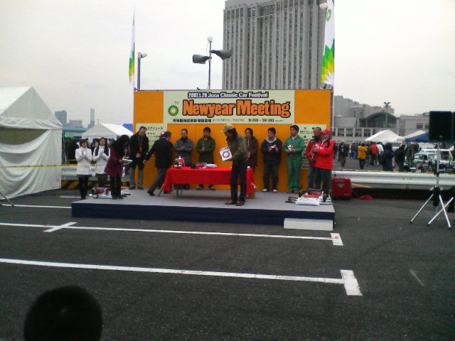 表彰式です 今大会 クラシックカーフェスティバルの グランプリを獲得した車両は 三菱のデボネアです