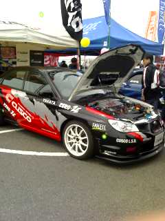 1回目の同乗走行を終えたインプレッサ。 2回目に向けてクールダウン中です。 人間と同じでクルマも休憩が必要なんですね。