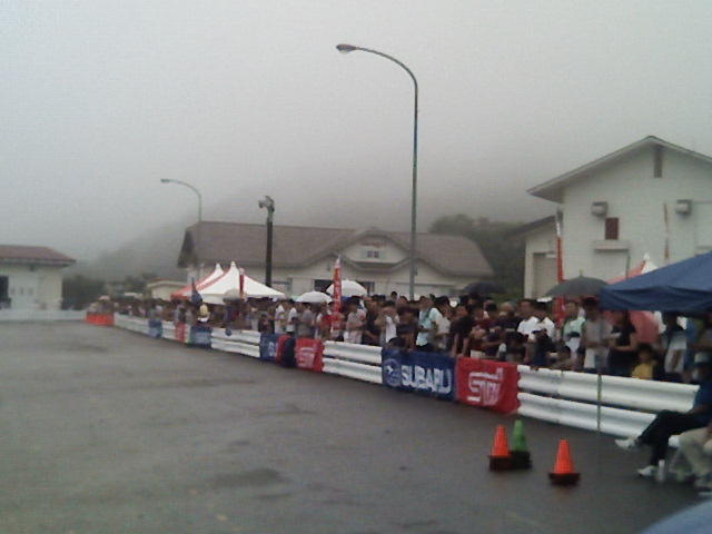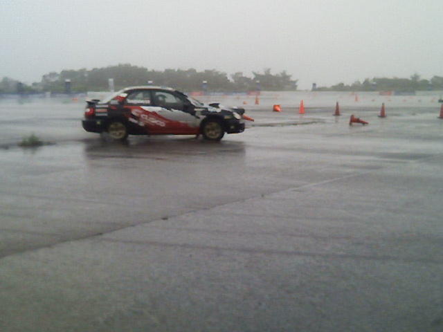富山県のイオックス・アローザ・スポーツランドで開催中のSUBARU WRC FESTA in HOKURIKUのひとコマです。 柳澤選手の隣で同情走行を体験したのは、石川県からいらしたフジノ様。 観客の方々の羨望のまなざしの中、走りました。 こちらは雨は上がってきました。