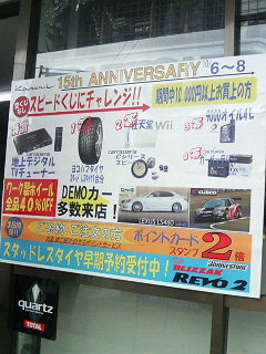カロンド15周年祭!2日目です。来店して頂ければだれでもOKのスピードくじの特賞はなんと「地デジチューナー」、そのほか「スタッドレス」「任天堂WILL」など盛り沢山です。三重県四日市の「カロンド」へ是非お出かけください。