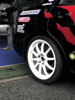 ブリヂストンさんのタイヤRE01RとGCー010Hホイール装着のクスコインプレッサを展示同乗走行をしています。是非、遊びに来てネ!