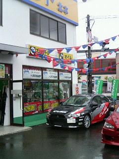 こちらタイヤセレクトキタモトではキタモト春の大商談会!が開催中です!本日のクスコ体感試乗デモカーはランサーエボ10です。あいにくの雨ですが、こんな時こそじっくり商談できます。是非お出かけください!