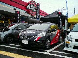 フェア期間中は、CUSCOブース前で同乗試乗(助手席)も体感できますようにCUSCOフィット(GE8)をスタンバイ。
