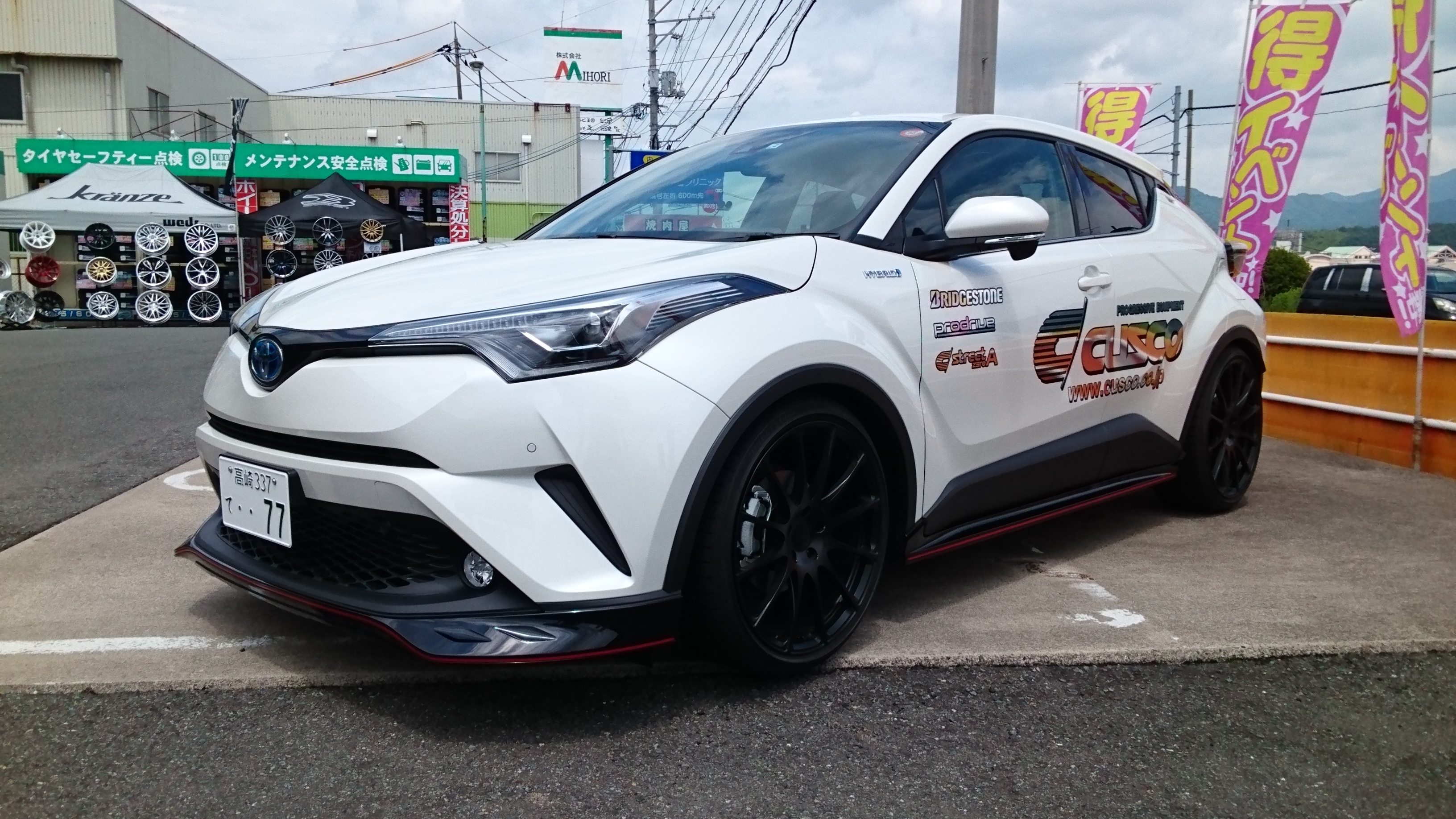車高調体感デモカーは、TOYOTA C-HR です。快適かつしっかりした走りを体感してください。「車高調street ZERO、タワーバー、スタビライザー、ボディ補強パーツ装着」