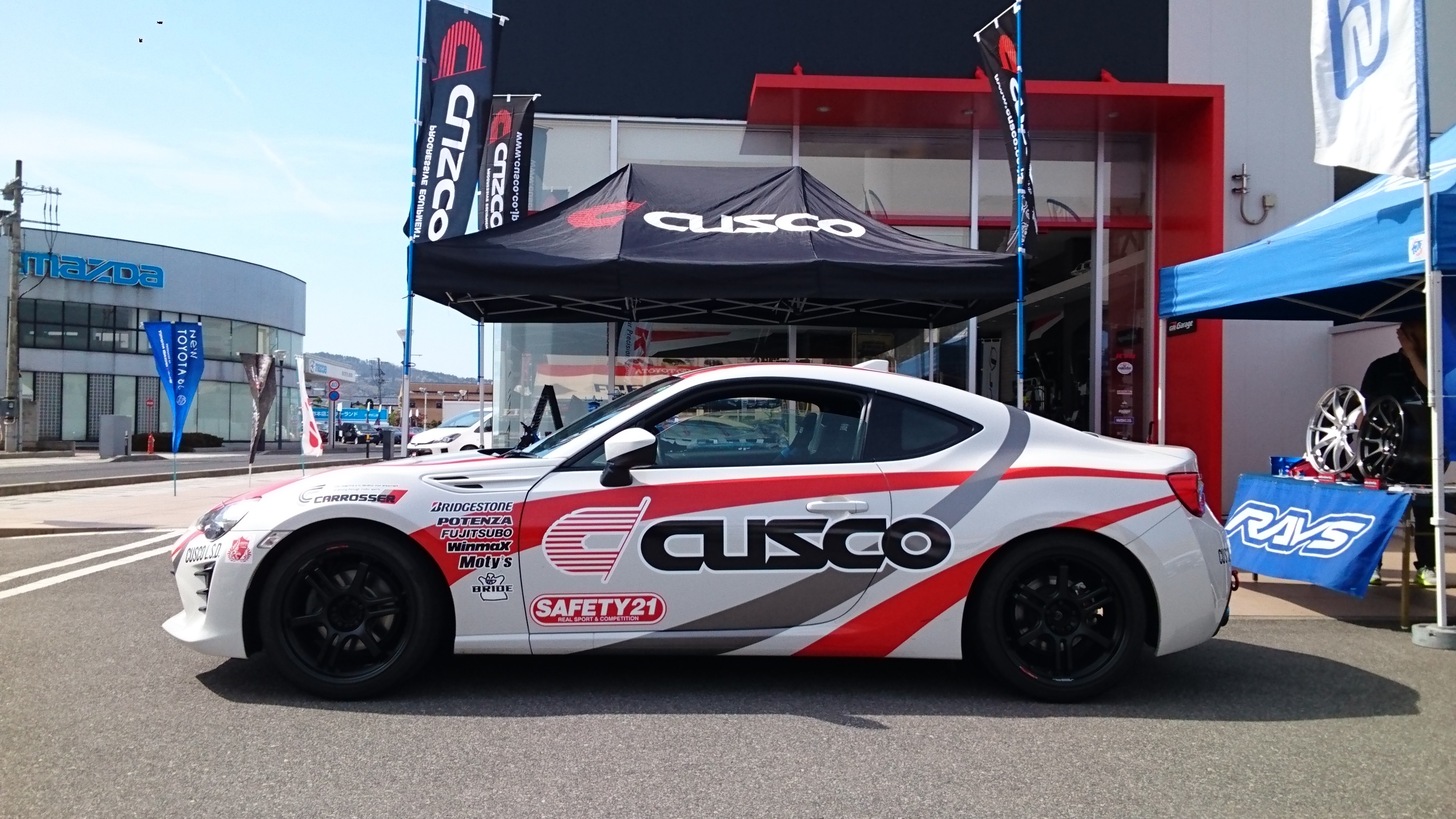 CUSCO SPORTS TN Sをはじめとして、CUSCOパーツフル装着のデモカーです。この機会に、同乗試乗でCUSCOパーツを体感してください。また、CUSCOスタッフが常駐してのパーツ相談会も実施してます。お気軽にお声をかけて下さい。