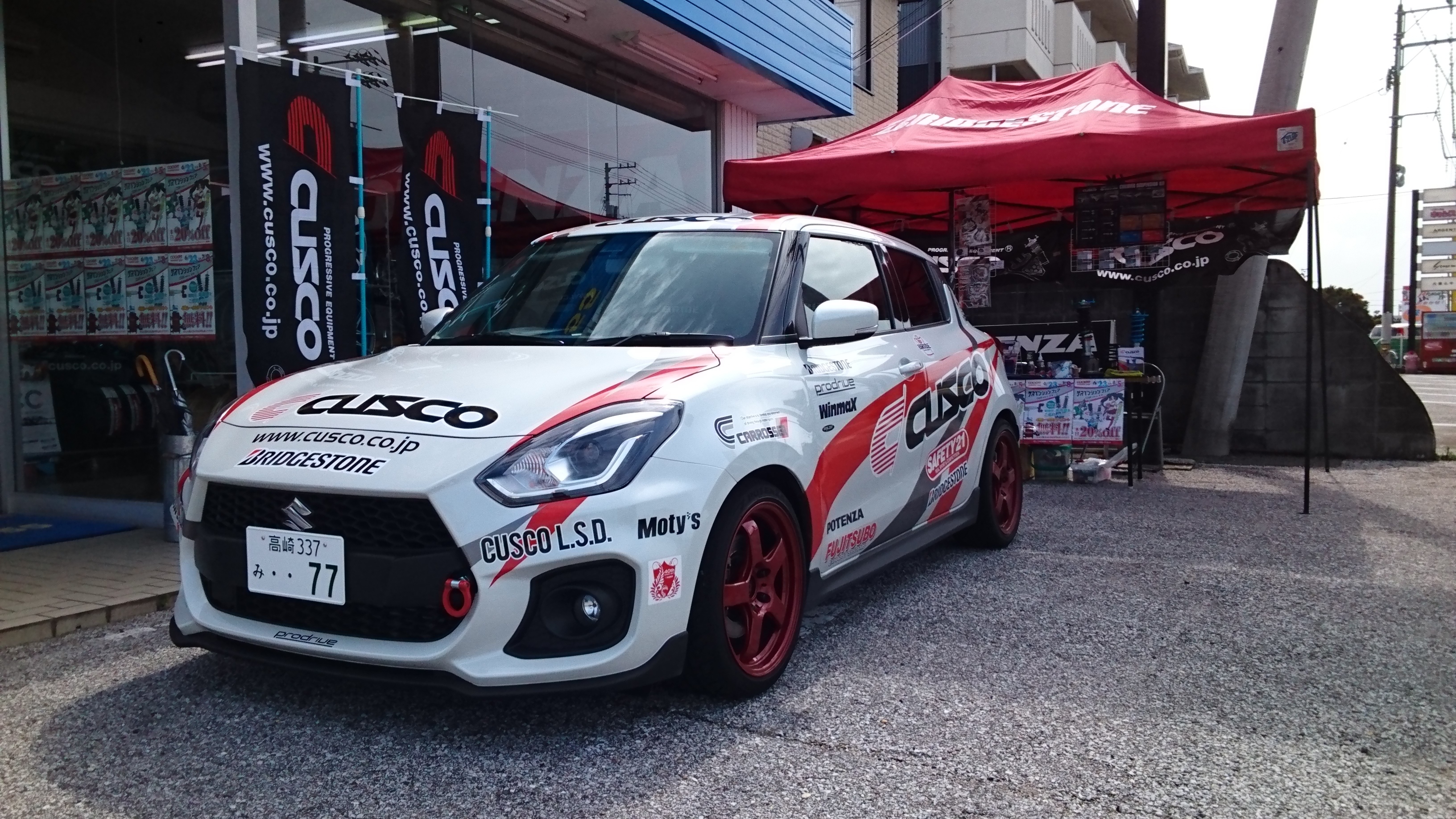 本日もCUSCOデモカー スイフトスポーツZC33Sの同乗試乗、CUSCOスタッフ常駐してのパーツ相談会&即売会実施してます。