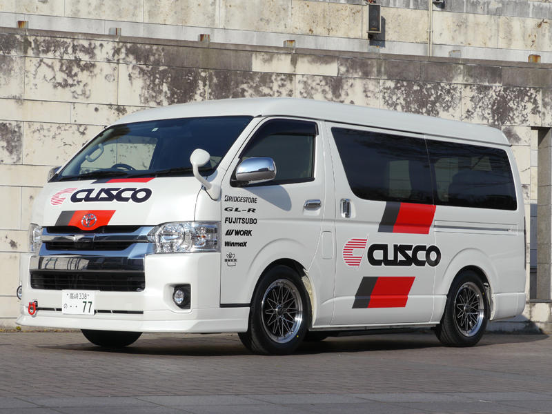 CUSCOデモカーは、東京オートサロン2019に展示したハイエースを用意いたしました。