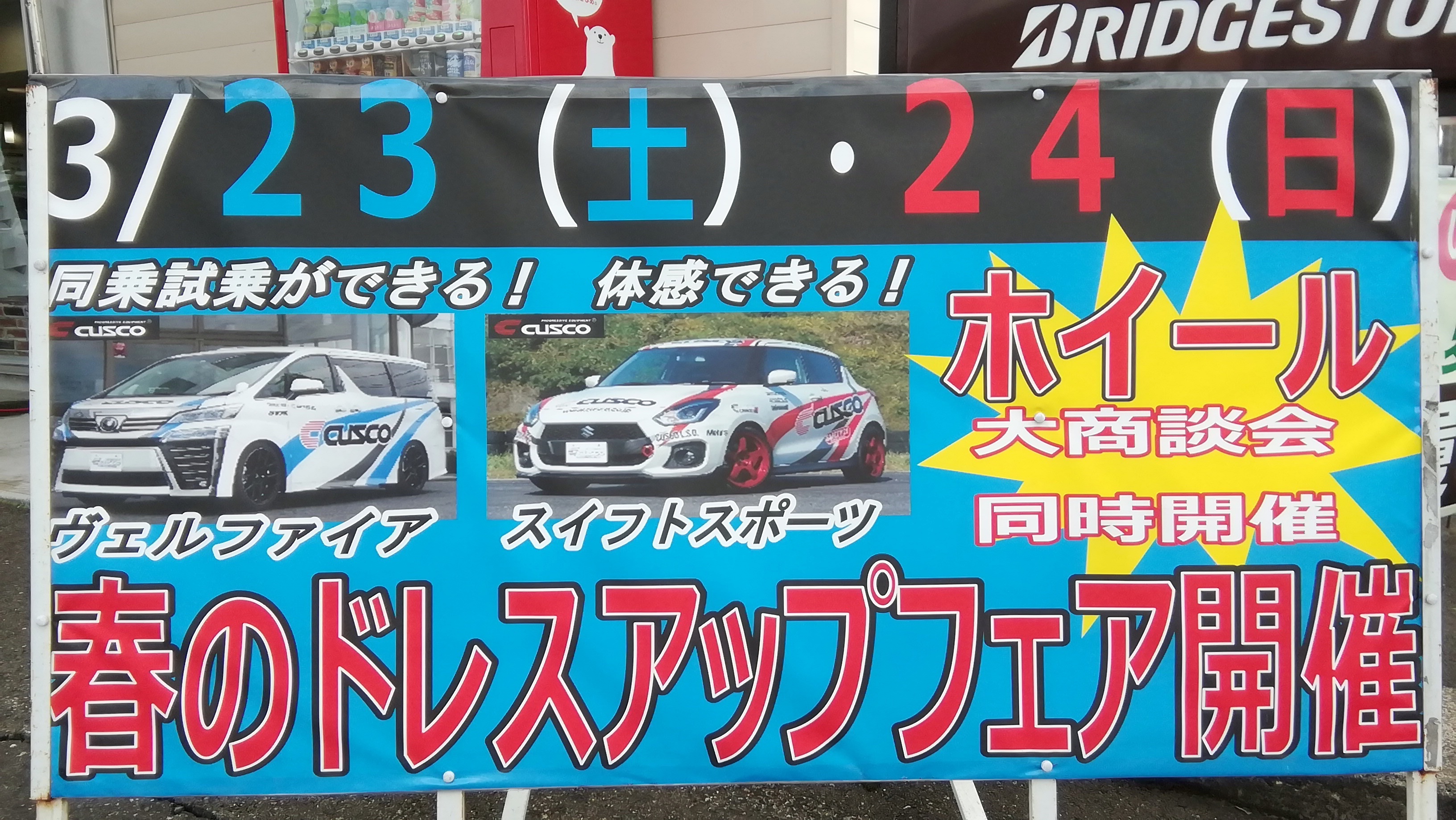 CUSCOデモカー スイフトスポーツ&ヴェルファイヤ後期の体感会も最終日になります。