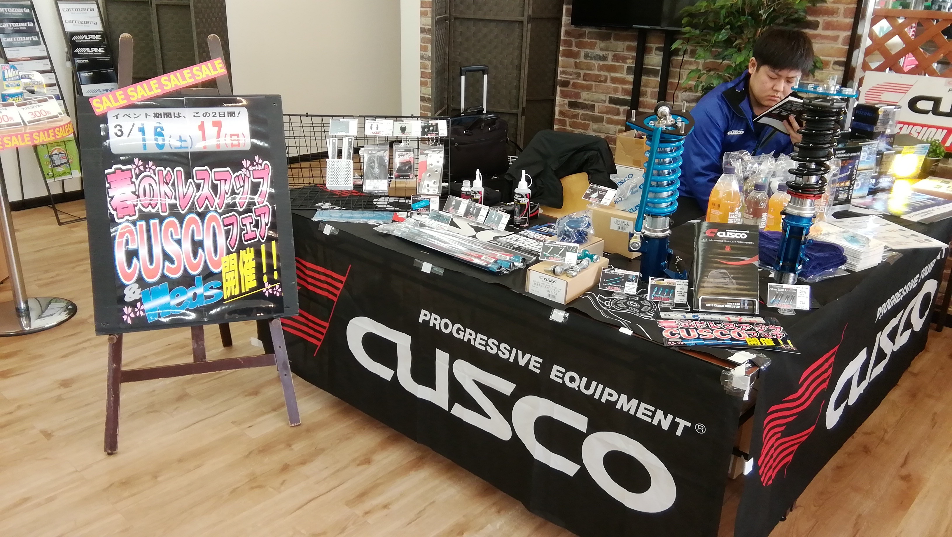 新潟県のタイヤ館三条さんで「春のドレスアップCUSCOフェア」を開催してます。