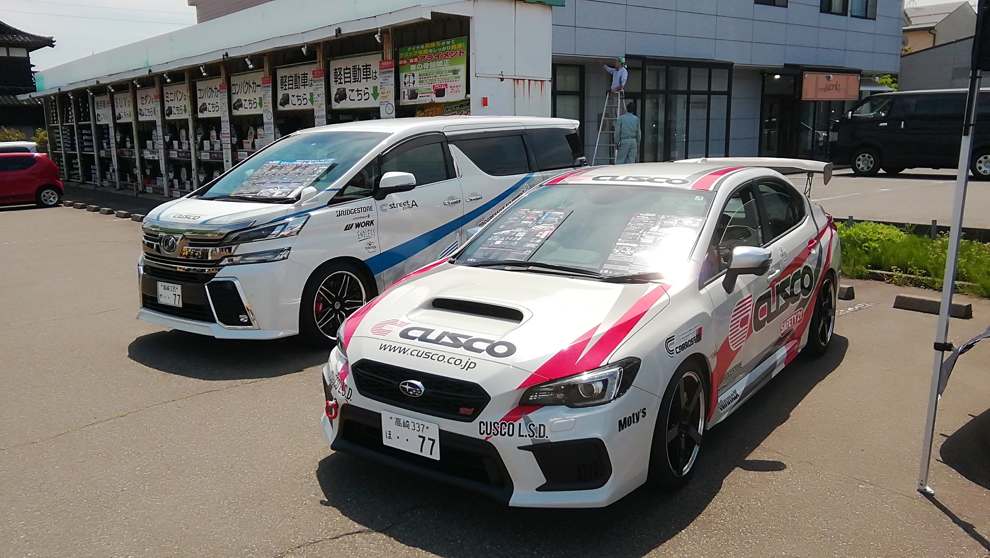 CUSCOデモカーはWRX STI、ヴェルファイヤの2台を用意。