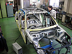現状は写真でおわかりのとおり、ボディ製作中です。ロールケージを組んでいるところです。今週いっぱいでこの作業を終了させ、来週から10日間、塗装に入ります。