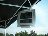 テントに下げてあるのはサービス用の電波時計。本番では整備時間が限られているので、時間との戦いです。この日も本番を想定しての整備、調整、交換を行い、「あと10分!!!」などの声が響きます。