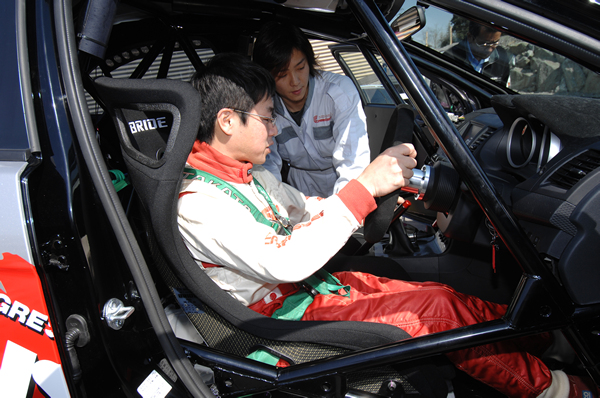 確かに、ボディーの大きさ等は感じますが、エンジンやACD等は非常に好印象で特にエンジンに関しては、かなり低速からトルク感があり、実際のラリーコースでは大きな武器になると思います。車の動き自体は確かに多少重さは感じますが、コーナー進入時のターンインが非常にスムーズで、今後サスペンションやACDのセッティングで解消できるのではないかと思います。
