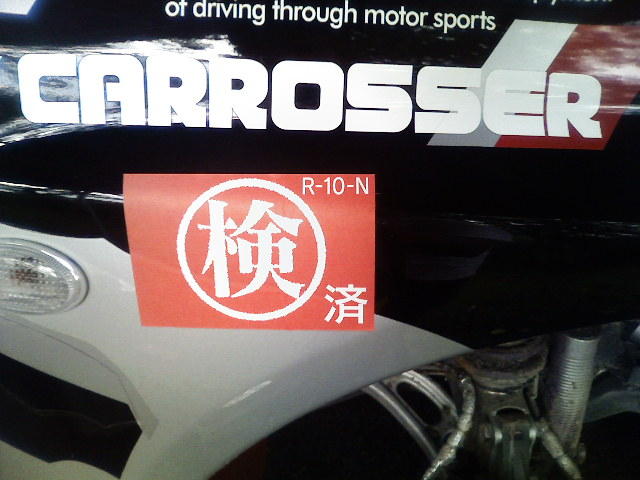 下の写真は、車検が無事に終わった証明のステッカーです。