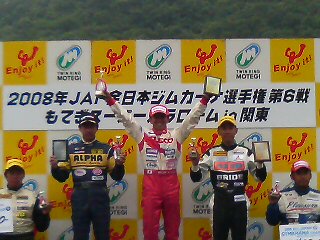 N4クラス菱井選手の表彰式の様子です。今回の優勝でシリーズチャンピオン決定しました。 天満選手は3位です。 応援ありがとうございました。