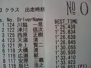 SA3 1本目の結果です雨上がっていますが、路面は濡れていました。