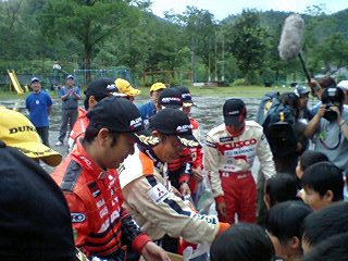子供たちは、ラリー車と選手を間近にして、大喜びです。