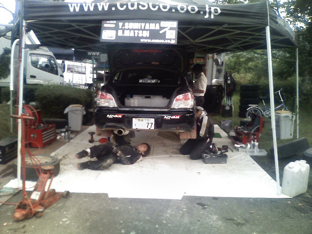 小野沢チーフメカニックの指示のなかで一時間のサービスタイムがはじまりました。車両に特にトラブルは無く通常メンテナンスをしています