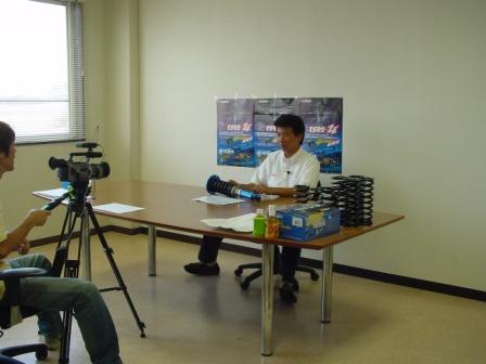 炭山選手は猛暑の中に2度目の製品紹介の撮影を開発工場で行いました。