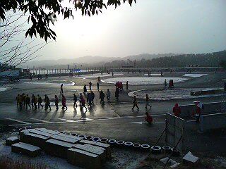 選手は、ただいま慣熟成歩行中です。 コ―スは雪が積もってきてます。 大変な1日になりそうです。