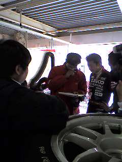 車から降りてくるとすぐさま、山中エンジニアに駆け寄りセッティングについて話し合う青木選手。山中エンジニアが鼻下に手を当てる時は、悩み考えている時です。
