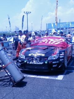 グリッド上は照り返しで暑い!今日はSTIの横断幕で暑さをしのぎます。