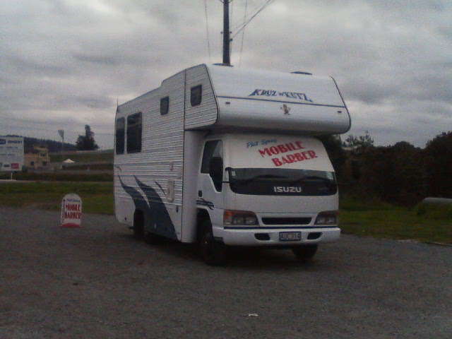 ニュージーランドで見つけた、日本では、あまり見かけない。移動床屋さん。