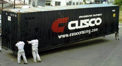 人と比べて見るとどれだけ大きなコンテナかわかります。