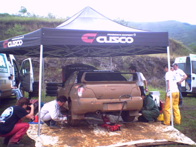 昨日に続き、雨が降ったり止んだりの不安定な天候の中でのテストで、あっという間にラリーカーも泥だらけです。