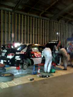 ワンガレイのワークショップに到着しました。明日のテストに向け全開で車両メンテ中。エンジン交換が終了し無事始動!まずは一安心です。