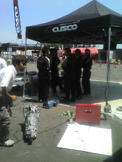 タイヤ外し→ガード外し→インタークラー外し→ドライブシャフト外し→マフラー外し→ミッション外しとその逆の流れを、全員で確認しています。