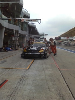 予選終了後、、車検場までクルマを移動させ再車検を受けます。 合格後、ピットまでマシンを押して来る、メカニックを誉めて下さい。