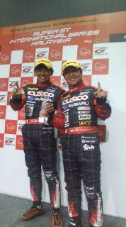 ポールポジションインタビューで、笑顔の山野選手と佐々木選手です。