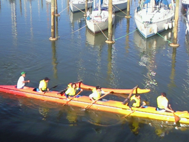 今日は、イベントがたくさんあります。今度は、ボートレース。へリッジ、クリス、柳澤、炭山は、参加し、練習中!
