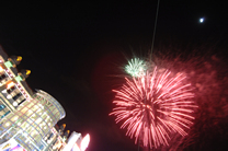 蒸し暑い夜の空には花火が似合う。ジョホールバルでも、スタートの夜空が彩られた |