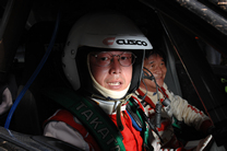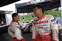 日本でもラリーでナビをしている設計・木暮は研修でマレーシア入り。石原メカの隣で緊張のコマ図読みです。 |